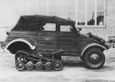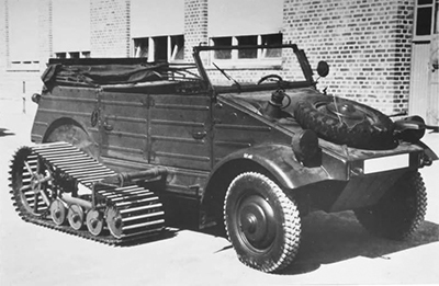 El Volkswagen tipo 82, más conocido por Kübelwagen, era el equivalente al jeep estadounidense en el ejército alemán. Un vehículo ligero para el transporte de personas. Sin embargo, a diferencia del Aliado, el Kübel no tenía tracción a las cuatro ruedas y en terrenos difíciles o con climatología adversa era fácil que se quedara atascado. Por eso, el ejército alemán estudió la posibilidad de mejorar sus prestaciones todo terreno (nada descabellado pues ya habían conseguido el Schiwimmwageb o VW tipo 166, el vehículo anfibio).